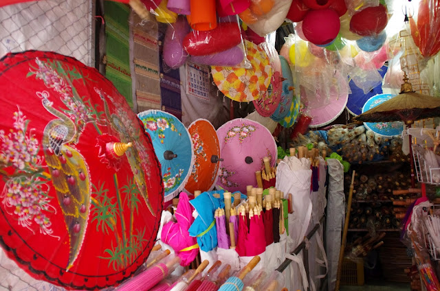 Quelques photos plus tard nous reprenons la voiture et continuons la montée jusqu'à la résidence d'été du roi. Pas ouverte au public pour le moment, nous poursuivons jusqu'au village hmong un peu plus loin. L'entrée très touristique ne nous incite pas à aller plus loin, nous redescendons sur Chiang Mai et prenons la direction de Bo Sang.